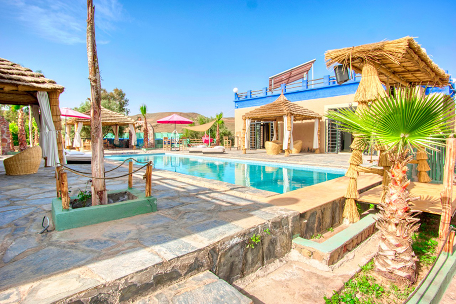 Dans cet espace naturel ouvert qui s’étend sur plus de 5000m², vous serez invités à déguster un bon cocktail de jus au bord de la piscine, profiter d’une bonne baignade avec un bain de soleil relaxant, admirer le calme et les sons de la nature et apprécier les paysages panoramiques des collines et des montagnes de l’Atlas.